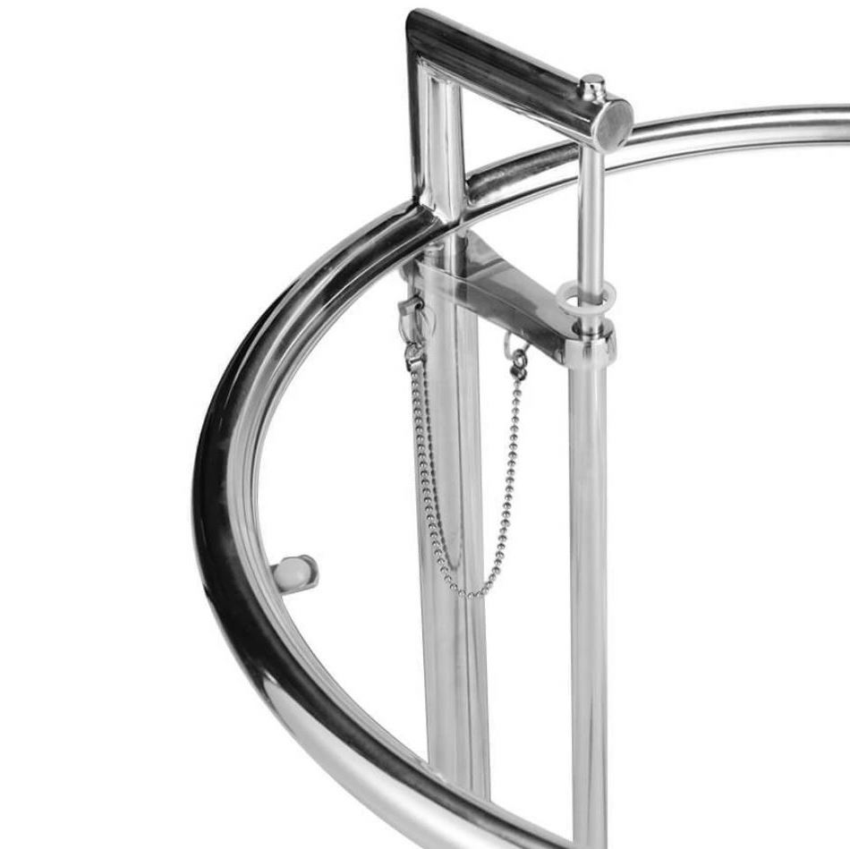 The Brielle End Table is a standout piece of mid-century modern accent furniture, boasting a circular and minimalist design with a single side bar connecting its tubular chrome frame. Its adjustable height mechanism enhances its adaptability and versatility, making it a versatile addition to any space.