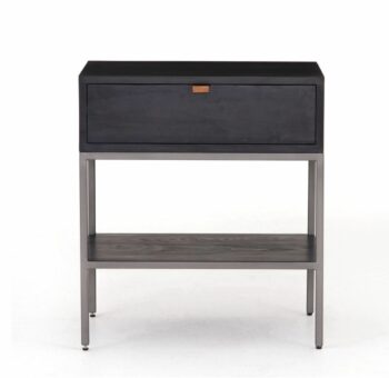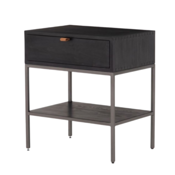 The Bronx single drawer nightstand features a clean, streamlined design that offers a structured but airy appearance to your bedside. Its grey-washed acacia veneer harmonizes perfectly with the matte iron frame, presenting a beautiful blend of natural elegance and industrial charm. This combination ensures the nightstand is both a functional piece and a stylish addition to any bedroom decor.