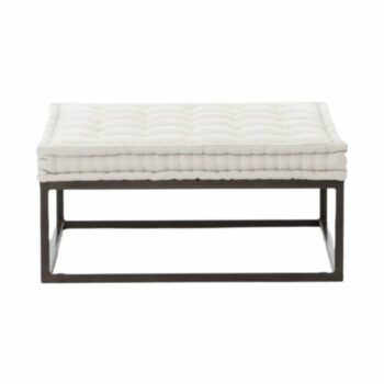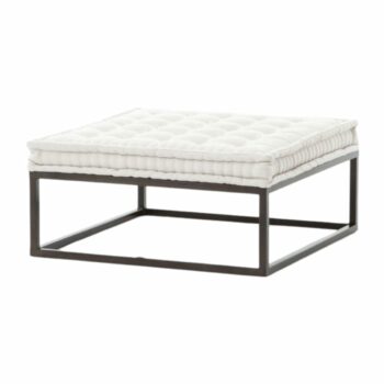 A contemporary low-profile coffee table crafted from grey concrete is encased in silver framing, offering a light appearance with a substantial feel and a touch of industrial edge.