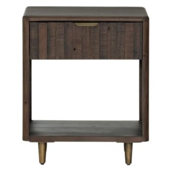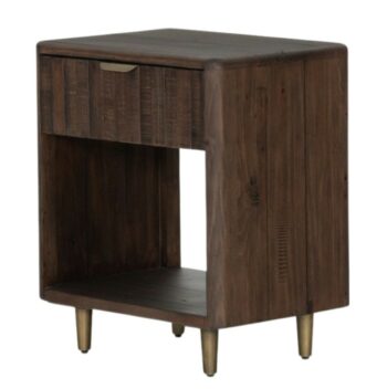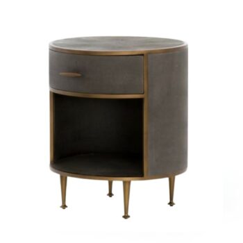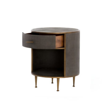 The Cal Large Nightstand, reflecting the clean lines of mid-century design, is a chic piece crafted from solid black-washed poplar. It features a unique metal-secured leather pull, providing an intriguing textural contrast. The lower shelf is perfect for arranging art books or decorative boxes, allowing for a sophisticated, layered aesthetic in any bedroom setting.