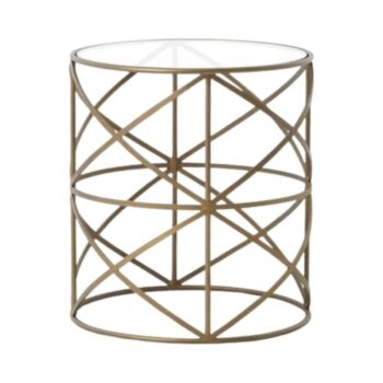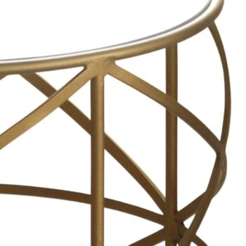 The round accent table in gold boasts a mirrored top and an embossed metal base with black tipping. Ideal for transitioning from traditional to transitional décor styles.