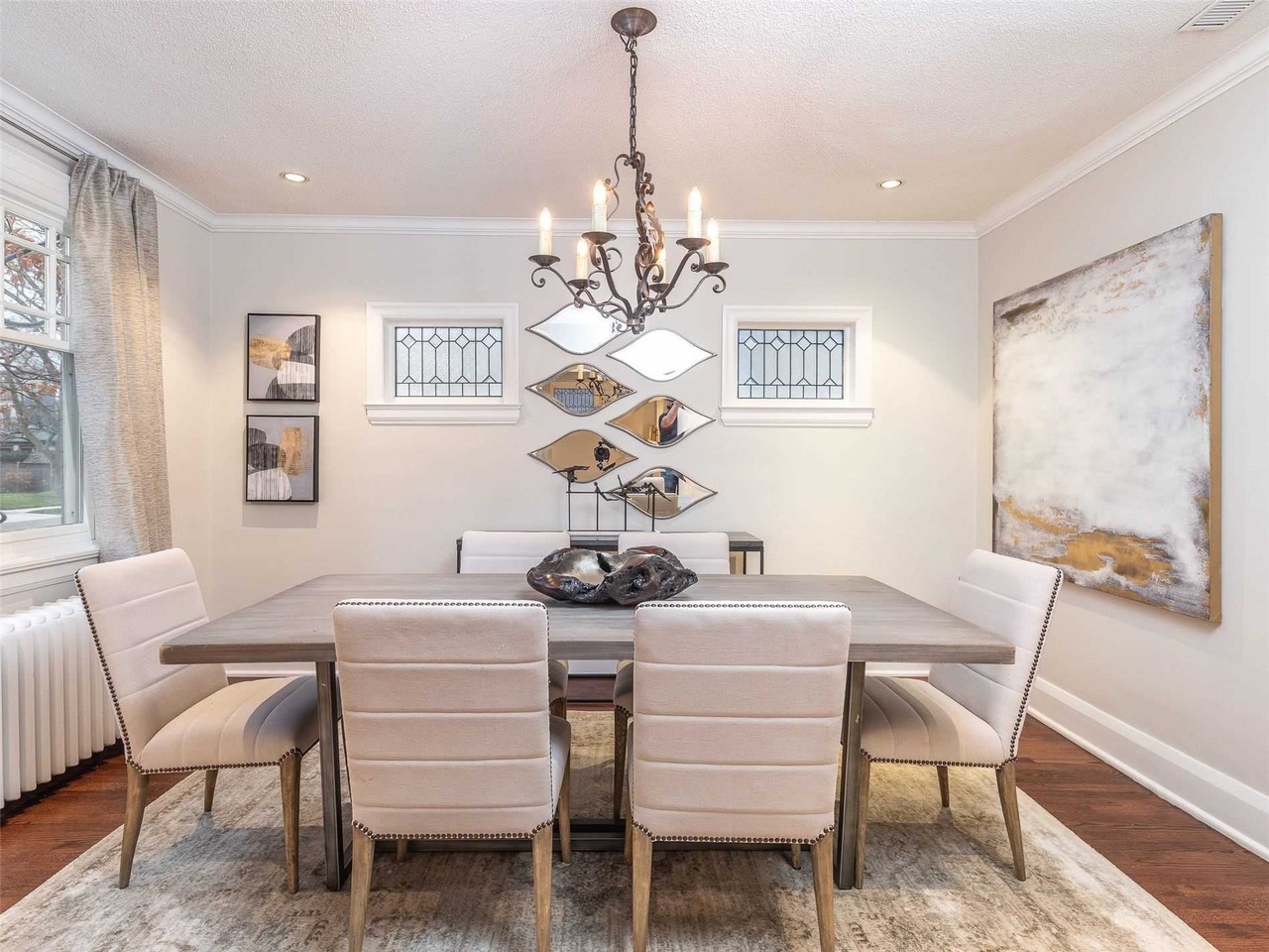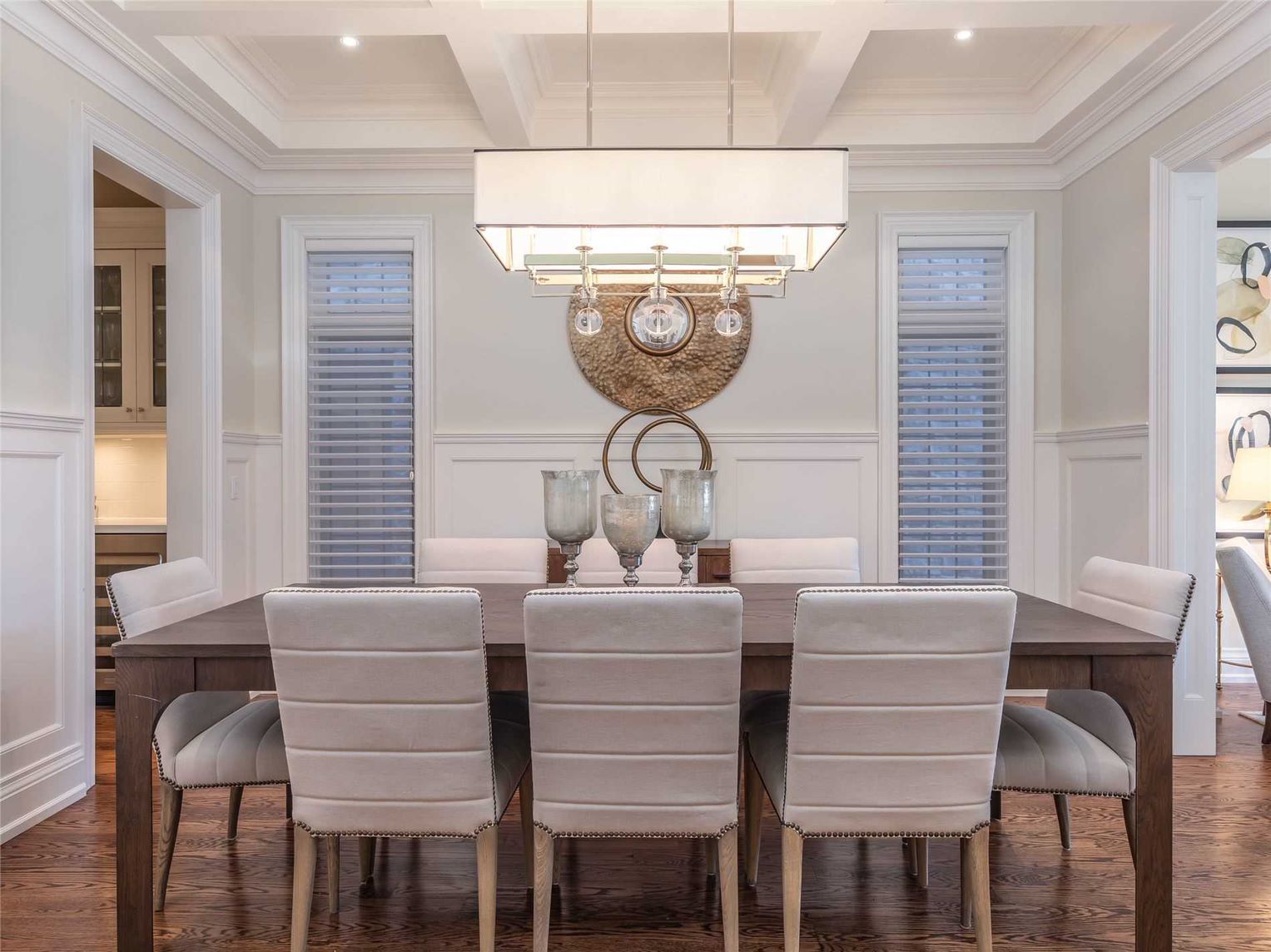 The Cresthaven dining chair offers a timeless design that complements nearly any dining table style, featuring linen upholstery with horizontal channeling and hand-applied nailhead trim for a touch of elegance.