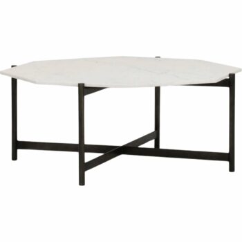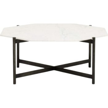 Contemporary materials intersect with geometric precision, exuding effortless sophistication. The textural base of brushed nickel forms clean right angles, supporting a thick marble top in polished white. The result is a harmonious fusion of sleek modernism and timeless elegance. For added impact, nest two tables together to create a striking ensemble.