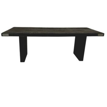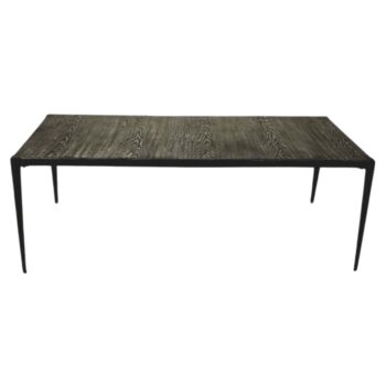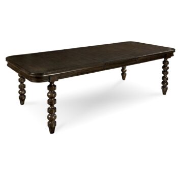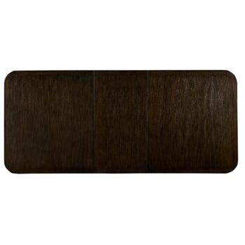 The Doncaster extendable dining table exudes sophistication with its curved legs, adorned with textural striations and a subtle metallic finish. The tabletop, elegantly simple yet refined, is crafted from white oak that has been cerused to accentuate its natural grain. With the option to add a leaf, extending its overall length to 98 inches, this table offers both versatility and timeless style for any dining space. Seats up to 10 with leaf.