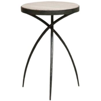 The Dover End Table is an instant classic, suitable for any room in the house. Its grooved hourglass base lends it a unique and memorable character, with a bronzy tone and a hint of iridescence. The top is veneered in white oak and finished in warm brown tones. Note the size before committing to this piece, as it is on the larger side.
