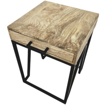 The Ender nightstand is a masterpiece of solid wood construction, exuding a naturalist charm throughout its classic rustic design. An antique silver-finished drawer pull enhances the beauty of its spacious single drawer, providing a striking contrast to the warmth of the wood. The lower shelf invites creative decoration, offering the perfect space to stack art books or arrange decorative boxes for a sophisticated, layered appearance