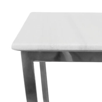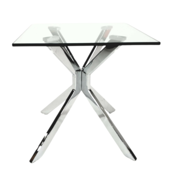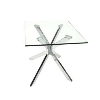 The Evans Collection distinguishes itself with elegant details and a contemporary twist, showcasing geometric motifs that are remarkably innovative in their simplicity. This sleek and stylish series features clear tempered glass with smooth polished edges, which appears to float above the polished stainless steel frame. This design maintains a light and airy ambiance, perfectly capturing the essence of a minimalist modern aesthetic.