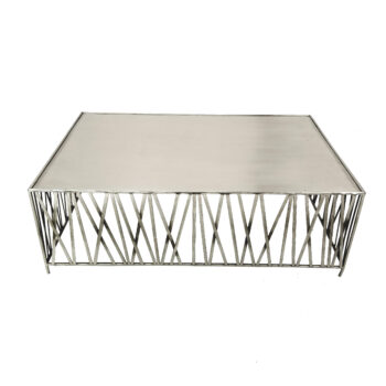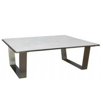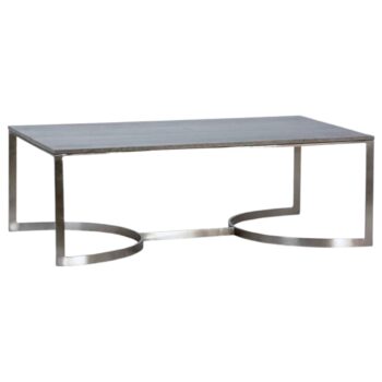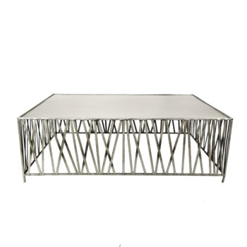 The Filius Coffee Table boasts a compelling linear motif, evoking the simplicity of Bauhaus style. With its natural cool white marble top elegantly contrasted by a slender brushed nickel frame, this table adds a touch of grace to any space.