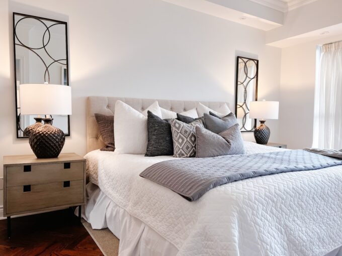 Elevate a primary bedroom’s aesthetic with the Gage King Headboard. Its exquisite diamond-tufted details not only add a layer of luxurious texture but also infuse a sense of sophistication and elegance into your décor. This headboard is more than just a functional piece; it’s a statement of style and refinement, transforming your bed into a focal point of beauty and comfort.