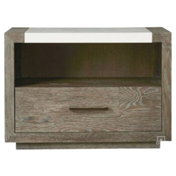 The Harley nightstand transforms vintage grey mahogany into a striking monolithic presence. Its considerable size paired with simple, clean lines commands attention, making a bold statement in any room. This piece combines the timeless elegance of mahogany with a contemporary grey finish, offering a unique blend of old-world charm and modern design.