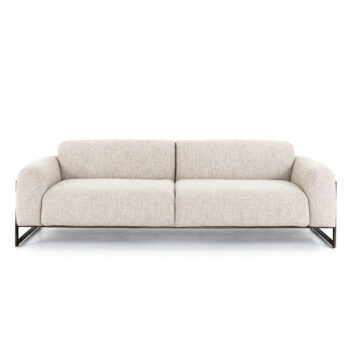 Deep, low seating invites relaxation in this stunningly unique sofa, which beautifully contrasts delicate cream upholstery with solid, grounding wooden arms. It epitomizes a modern organic aesthetic and serves as a captivating focal point in any staging. Please see StageBetter Tips for delivery information.