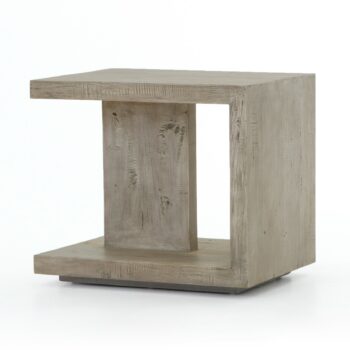 The Kendall nightstand showcases a contemporary design through its elevated, open framework. Standing on four slender, tapered legs, this piece features a roomy drawer and a convenient pull-out shelf, both adorned with bronze hardware. It’s finished in a flint white stain that not only highlights the intricate textures of the wood grain but also adds a fresh, modern touch to its appearance.