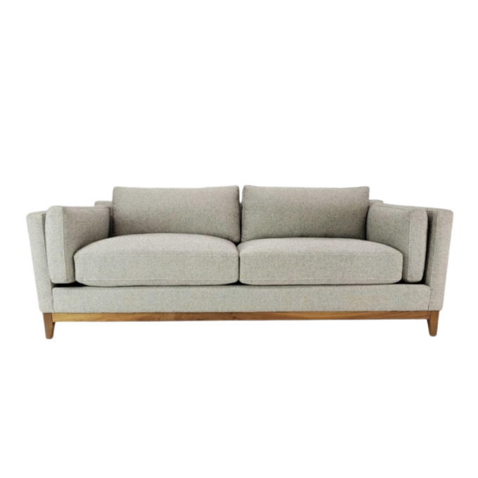 We would characterize the Lorelei sofa as fashionable and upscale, with a hint of comforting nostalgia. Its beautiful tweed-like grey fabric is versatile, making it perfect whether dressed up for a more formal setting or left relaxed for a casual ambiance.