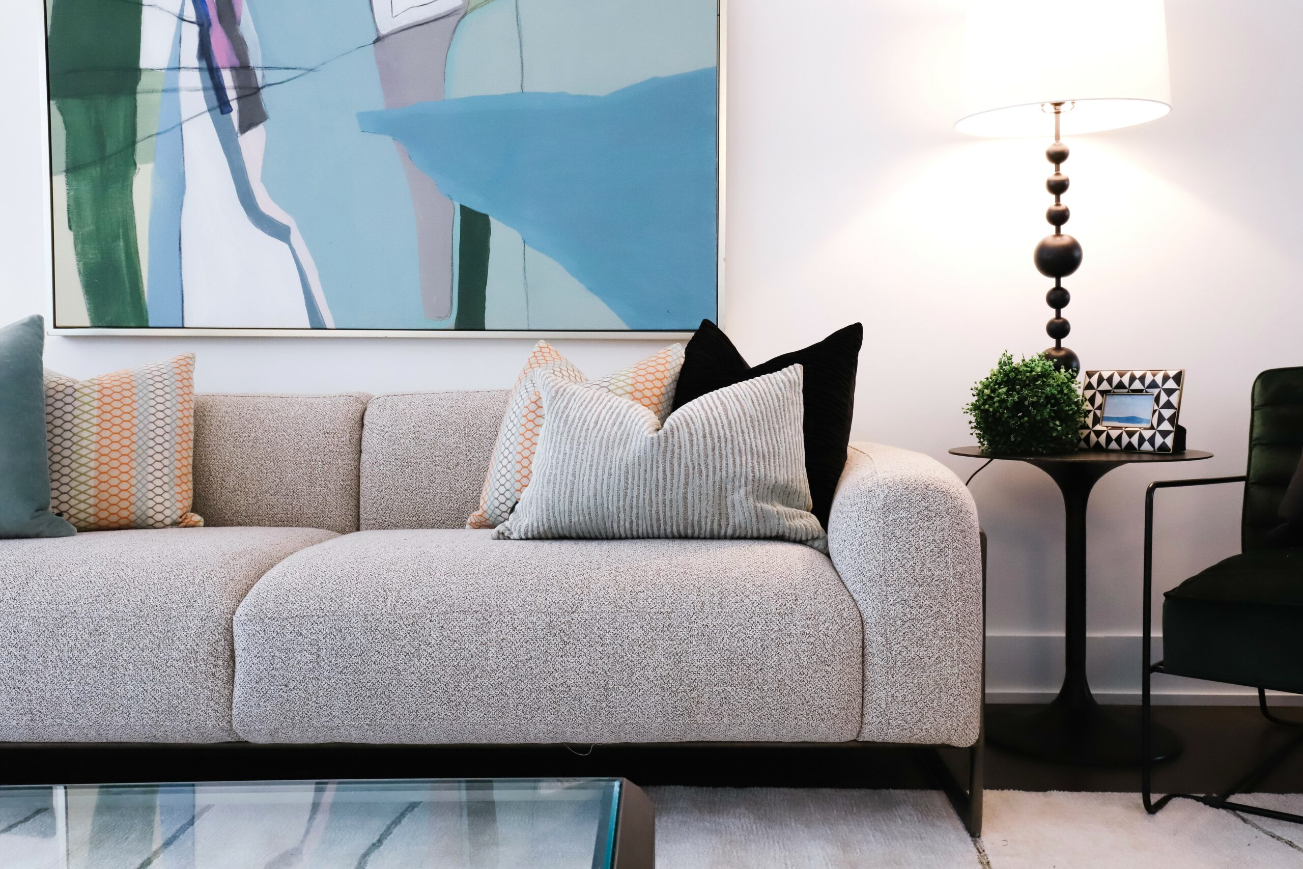 With its soft and sculptural lines, the light upholstery of the Maeve sofa is tailored to perfection. The exposed framing of grey-brushed stainless steel adds a dramatic focal point to any contemporary interior. While the sofa is wide, it is not overly deep, resulting in a look that is both substantial and inviting without overwhelming the space.