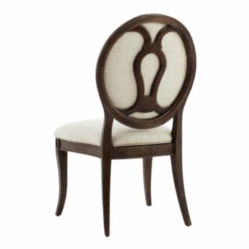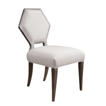 The Nelson Dining Chair features an elegantly understated design, with full upholstery and refined detailing, including a horizontal top rail and vertical back rail crafted in cerused white oak. The chair’s rails and gracefully tapered legs boast a warm Kona finish, offering a sophisticated touch to any dining setting.