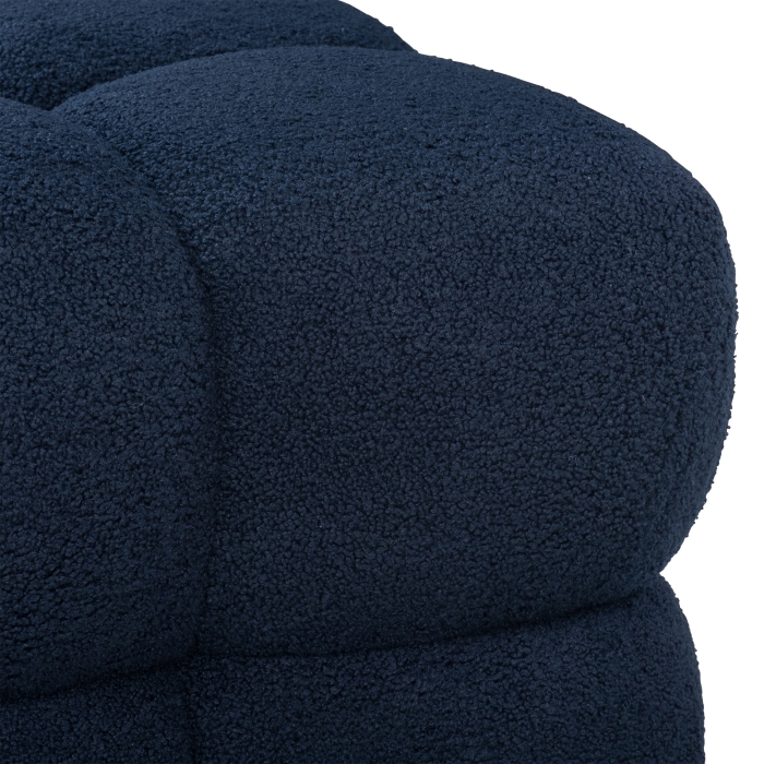 Add a touch of cozy charm with this unique, textured ottoman in a deep navy hue. The plush, boucle fabric offers a tactile, soft feel, while its bold, sculptural design creates visual interest in any space. Its compact, versatile shape makes it a perfect accent piece, adding a pop of color and comfort to living rooms, bedrooms, or smaller spaces in need of a stylish and functional addition.