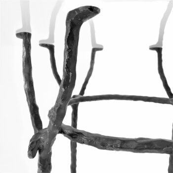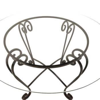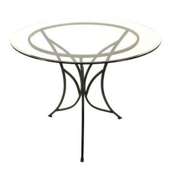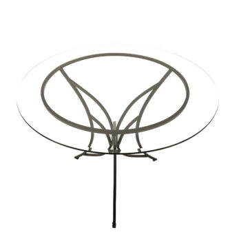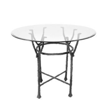 The Rebecca Dining Table is designed to infuse any space with a dash of glamour. This table features a gleaming tempered glass top that elegantly rests upon an airy cylinder composed of hand-made, organically spaced bars. Its striking iron base is beautifully finished in antique brass, adding a luxurious touch to the overall design.
