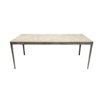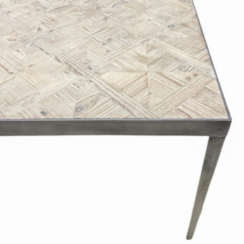 The Roe Dining Table, designed for 6, draws inspiration from provincial farmhouse styles, offering an inviting presence with a sophisticated twist. Its patterned top, inlaid with maple and oak veneers, adds a refined touch, while the striking turned legs and apron boast a white painted Stucco finish. The tabletop’s Natural Oak finish complements this design, marrying rustic charm with elegance. This table is perfect for those seeking to blend traditional warmth with a hint of sophistication in their dining space.