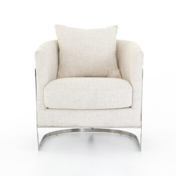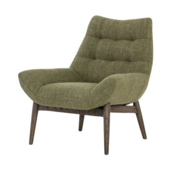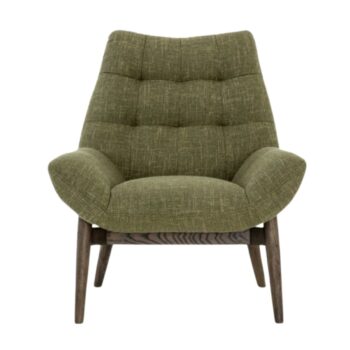 Infuse your space with dramatic flair with the Art Deco-inspired design of the Olive Accent Chair. Its vibrant olive green fabric and curved base crafted from silver-finished steel create a striking contrast. Perfect for adding a touch of drama to any small space.