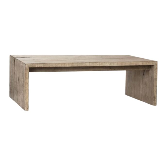 The Southside coffee table stands out with its distinctive modern design, making it an ideal centerpiece for any chic living space. Combining clean lines with a mid-century aesthetic, this modern coffee table features a unique, seemingly single piece of reclaimed pine.