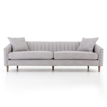 This sofa grabs your attention right from the start. With its bold grey canvas upholstery and clean lines, it becomes the centerpiece of any room. Perfect for family rooms with a laid-back vibe or for adding a touch of masculine, industrial style to any space.