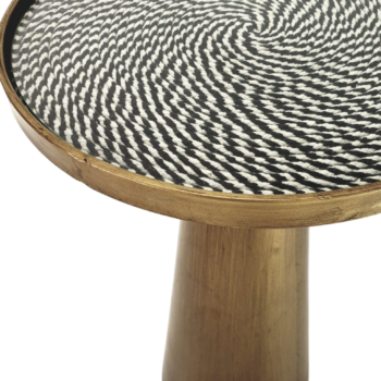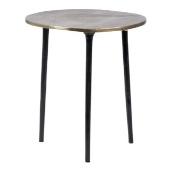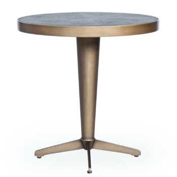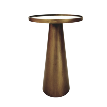 This pedestal table, influenced by vintage aesthetics, features an antiqued mirror top for a bold, modern look, accented by a chic brushed brass base. It masterfully blends old-world charm with contemporary flair, creating a standout piece that adds a unique touch of elegance to any setting.