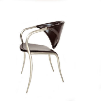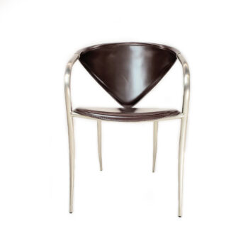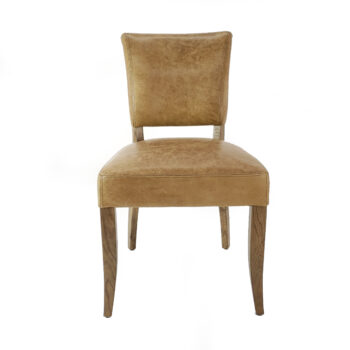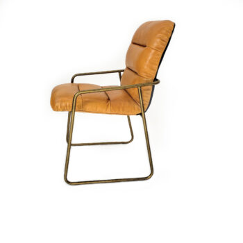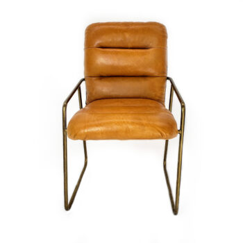 Elevate your office with the Vauxhall desk chair, boasting mid-century modern flair in luxurious cognac-colored leather. Its shell seat and back design, featuring a scoop-back shape, offer a sleek silhouette, while the detailed loop stitch adds a touch of casual rustic charm.