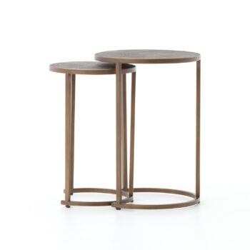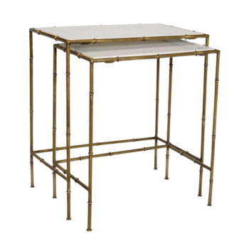 Antique brass legs provide a sturdy base for the classic white marble top, lending a layer of sophistication and style to any area. By pairing tables of different sizes, you can create a versatile nesting set. The marble’s flawless surface forms a striking contrast against the brass’s warm tones, making the table a visually captivating addition to any space. Its luxurious charm is suited for a variety of settings, including living rooms and studies, where it enhances the overall ambiance with its elegant presence.