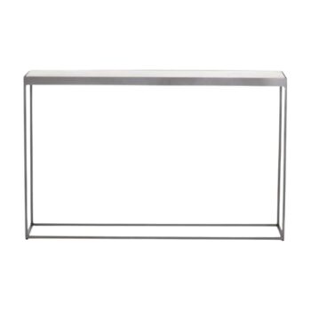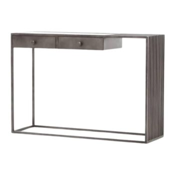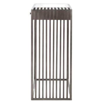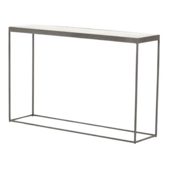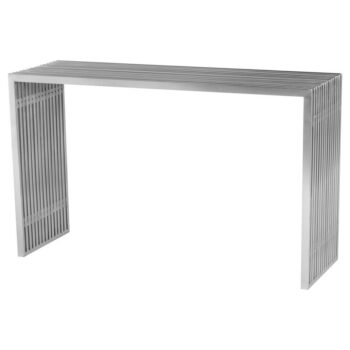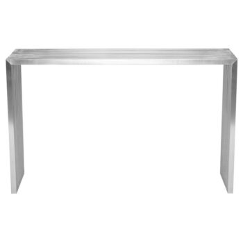 The Waterfall style console table features a transparent surface that seems to float in the room, maintaining a light visual presence. Its minimalist design offers the flexibility to blend seamlessly with both modern and eclectic decor.