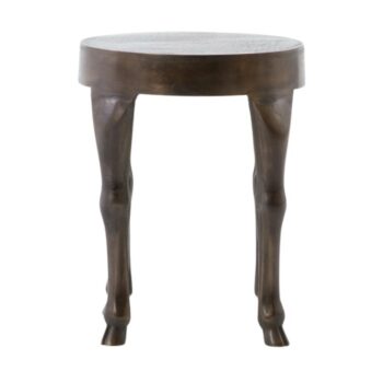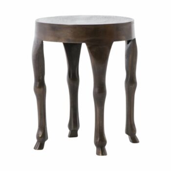 The Webb End Table exudes a modern vibe with its meticulously crafted curves. Enhanced by swirls of color, the antique rust finish gains depth and character, making this table a captivating addition to any space.